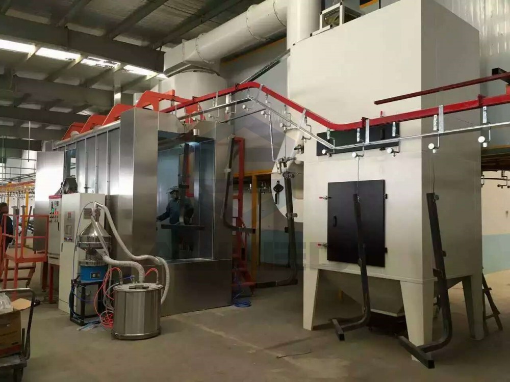 2、濾芯回收裝置縮短回收管路,減少風(fēng)量損耗,換色清理更容易,只需另備幾套用于不同顏色粉末噴涂的濾芯即可,配備脈沖反吹裝置,定時(shí)清理吸附在濾芯又cc表面的粉末,確?;厥招Ч?。