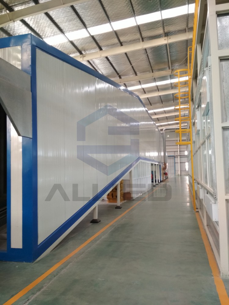 本廠(chǎng)烘干固化爐爐形式是多樣化的,有直通式、全橋式、半橋式等多種形式,按加熱方法來(lái)分,又有燃油(氣)加熱熱風(fēng)循環(huán)式、集中式電加熱熱風(fēng)循環(huán)方式、遠(yuǎn)紅外電加熱熱風(fēng)攪拌方式等,適用于不同用戶(hù)和場(chǎng)合。
